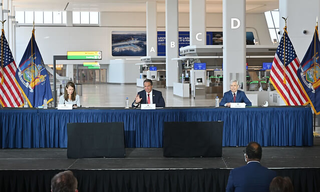 The new Arrivals and Departures Hall also showcases permanent public art installations curated by the Public Art Fund, enhancing the passenger experience and underscoring New York's global position as a beacon for arts and culture.