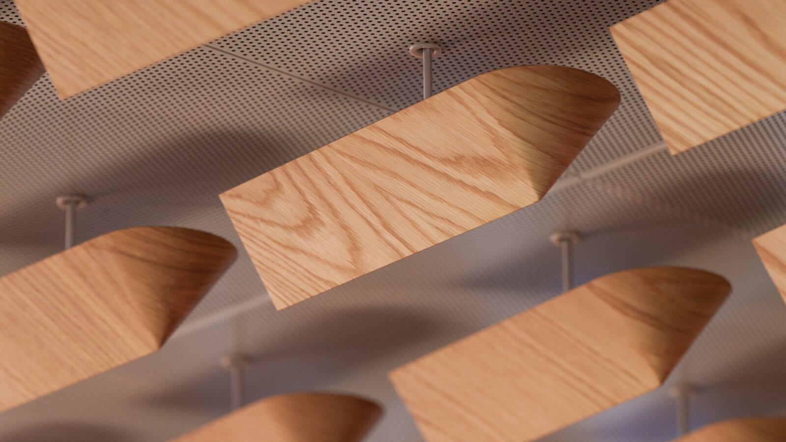 All Points Canada’s pendants are handmade art objects. Each pendant is made of a thin sheet of custom white oak laminate treated with mineral oil to accentuate the depth and vibrancy of the wood grain. This laminate is bent into a canoe shape and fit with a hidden 3D printed spine with an attachment detail for the rod. Canoes are weight balanced to allow for smooth, level rotation. Foreseeing the need to clean and maintain the artwork, the client also asked that the pendants be removable without a technician needing to open the ceiling. Patten Studio designed a 3D printed detachable twist & lock coupler to comply with this request. In order to meet building regulations for ceiling artwork, the final coupler design is capable of bearing a 180lb+ load.