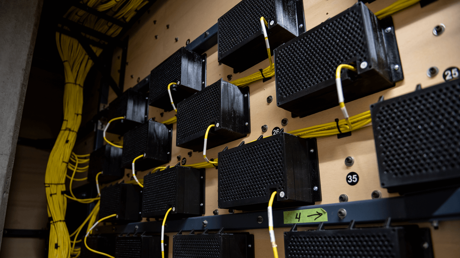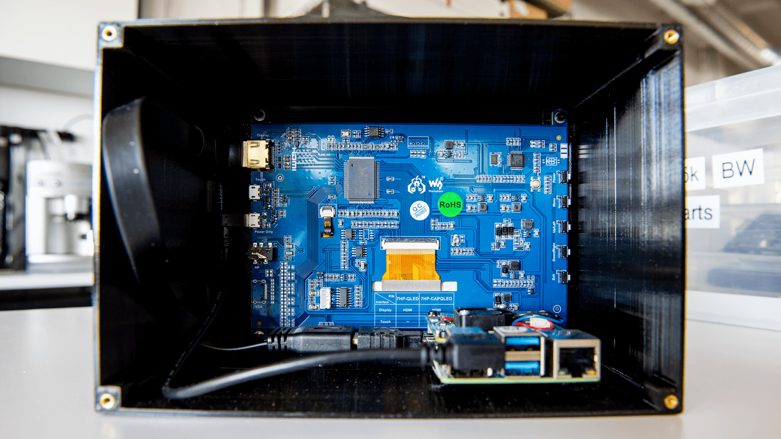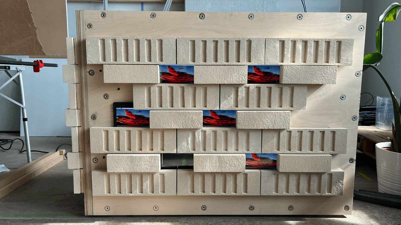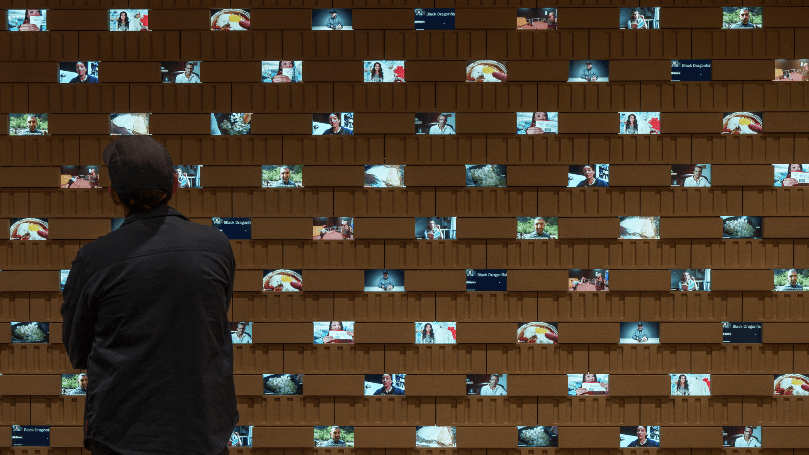 The artwork’s 85 mini displays each contain a QLED display and a Raspberry Pi encased in a ventilated 3D printed enclosure. Patten Studio firmware written in C++ allows the Raspberry Pis to communicate with SOSO’s graphics software, which controls the wall’s content.